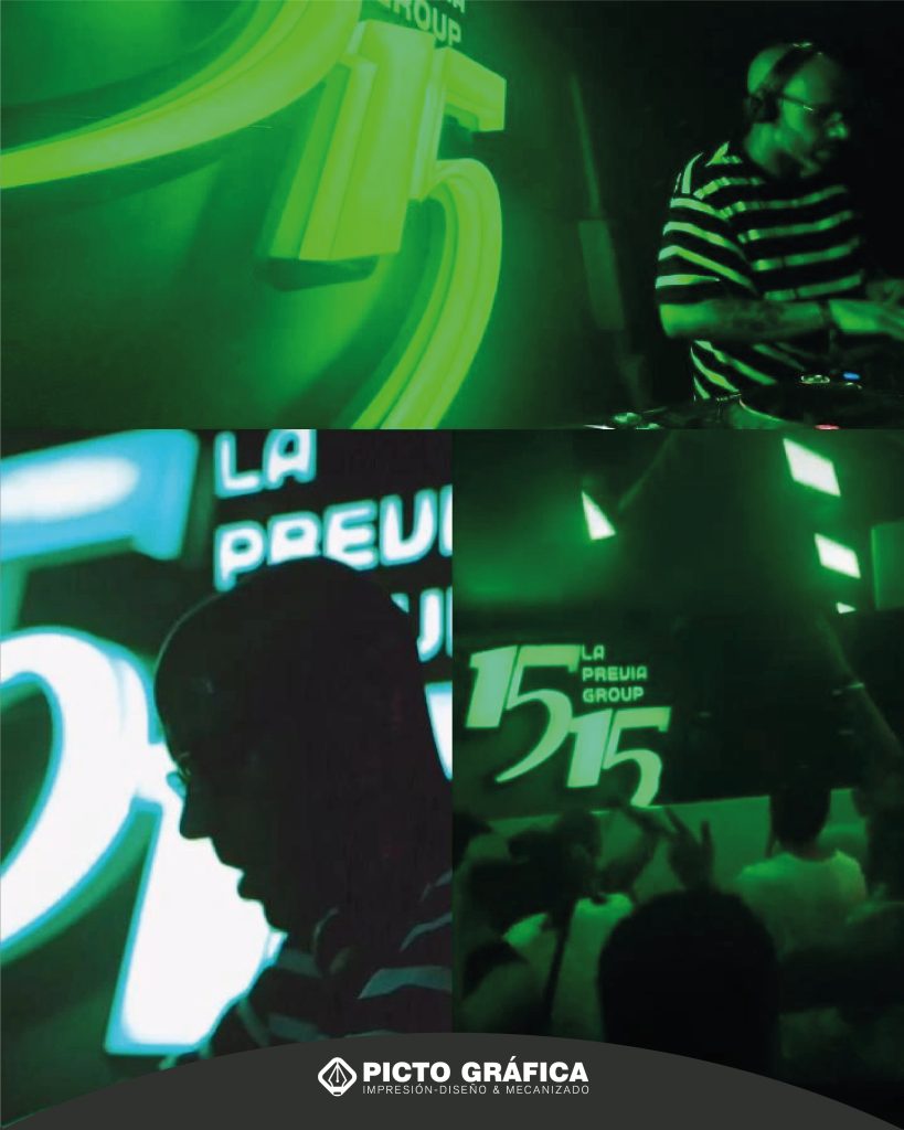 En Pictografica, tuvimos el placer de colaborar con La Previa Group, un cliente dedicado a la organización de eventos de música electrónica. El objetivo era crear un rótulo que no solo destacara en sus eventos, sino que también fuera un elemento visual clave detrás del DJ.