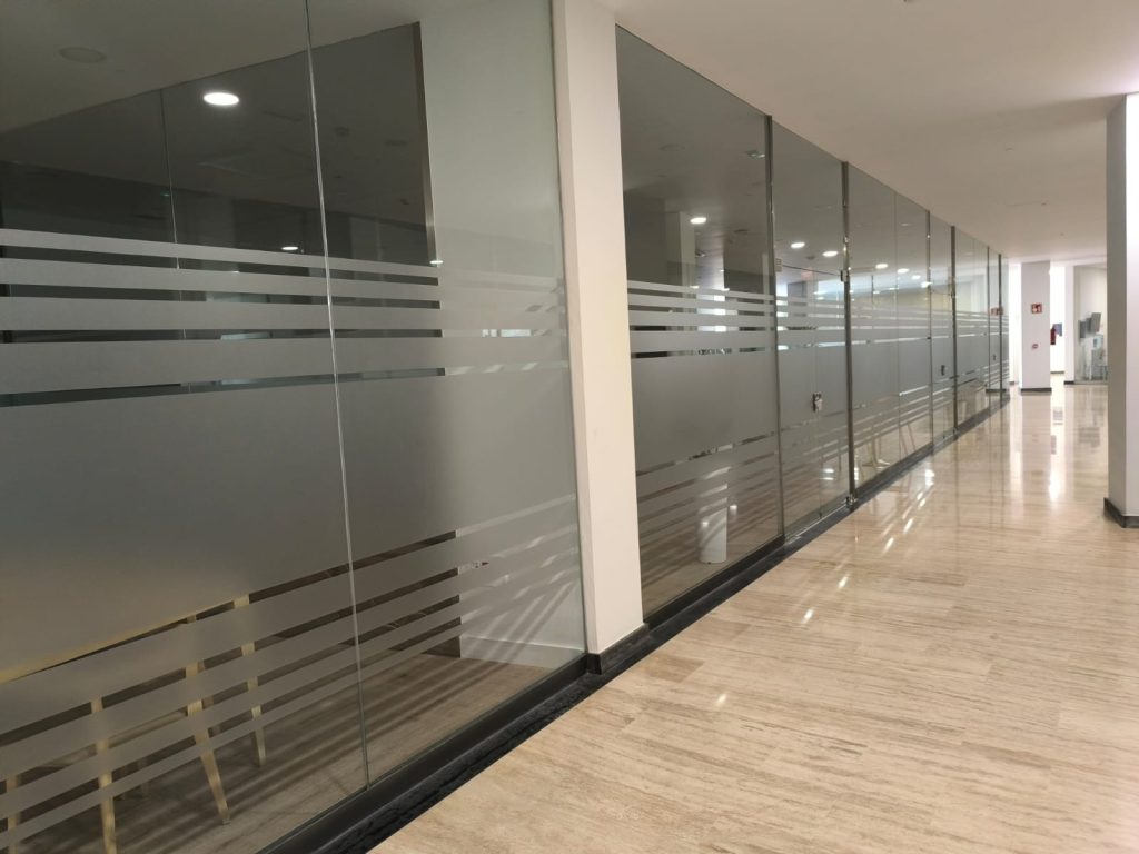 El vinilo arenado no solo mejora la estética de un espacio, sino que también ofrece beneficios prácticos, como mayor privacidad y reducción del deslumbramiento. En un entorno corporativo como el del Hotel Victoria, este acabado contribuye a un ambiente de trabajo más elegante y cómodo, reflejando la alta calidad del establecimiento. Este acabado no solo refleja la alta calidad del establecimiento, sino que también mejora la experiencia general de quienes trabajan en el hotel