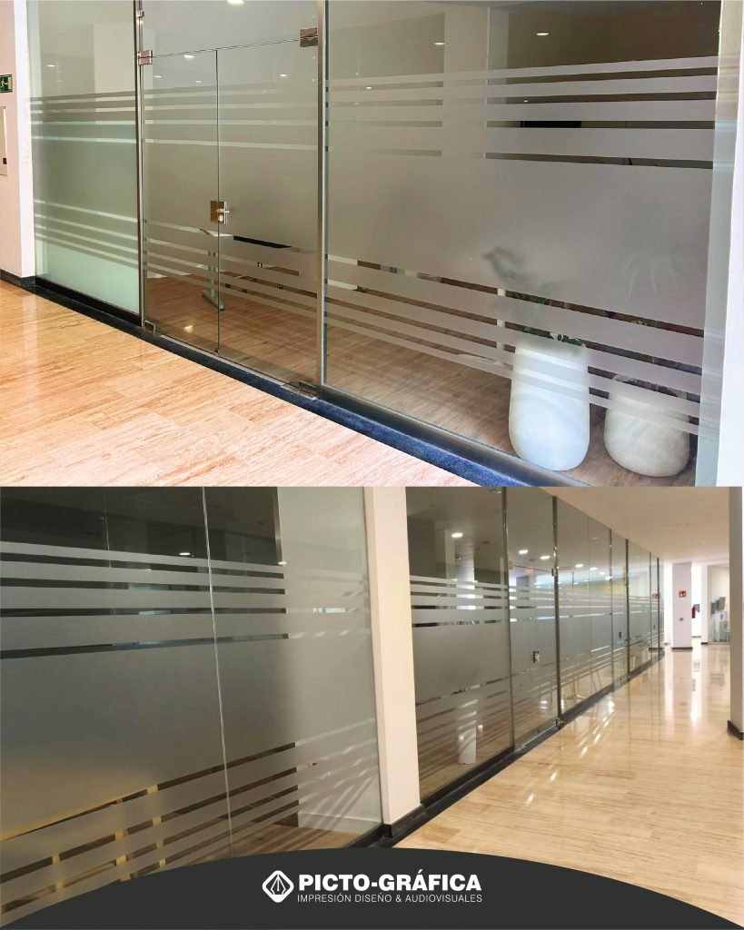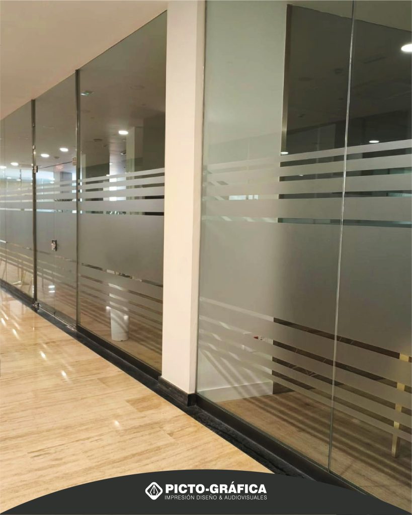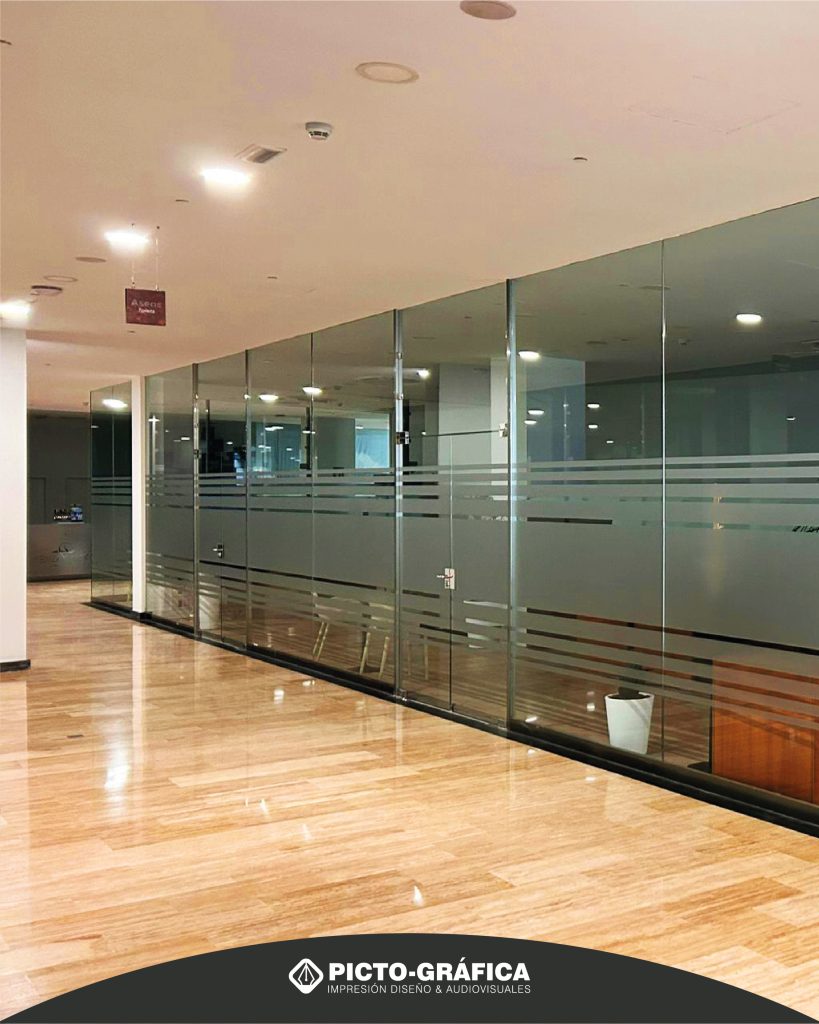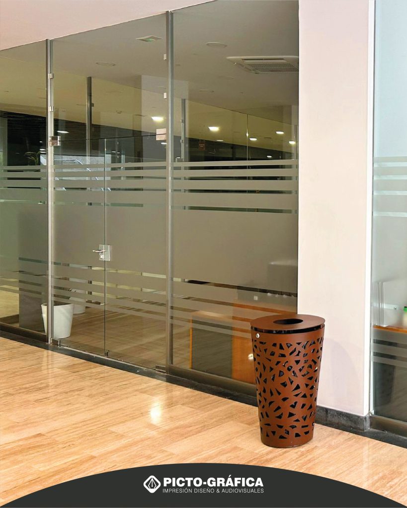 El vinilo arenado es un material adhesivo que imita el efecto del vidrio arenado. Se utiliza para aplicar diseños decorativos o funcionales en superficies de vidrio, proporcionando un acabado elegante y profesional. Ideal para oficinas, el vinilo arenado ofrece privacidad adicional sin sacrificar la luminosidad natural del entorno.